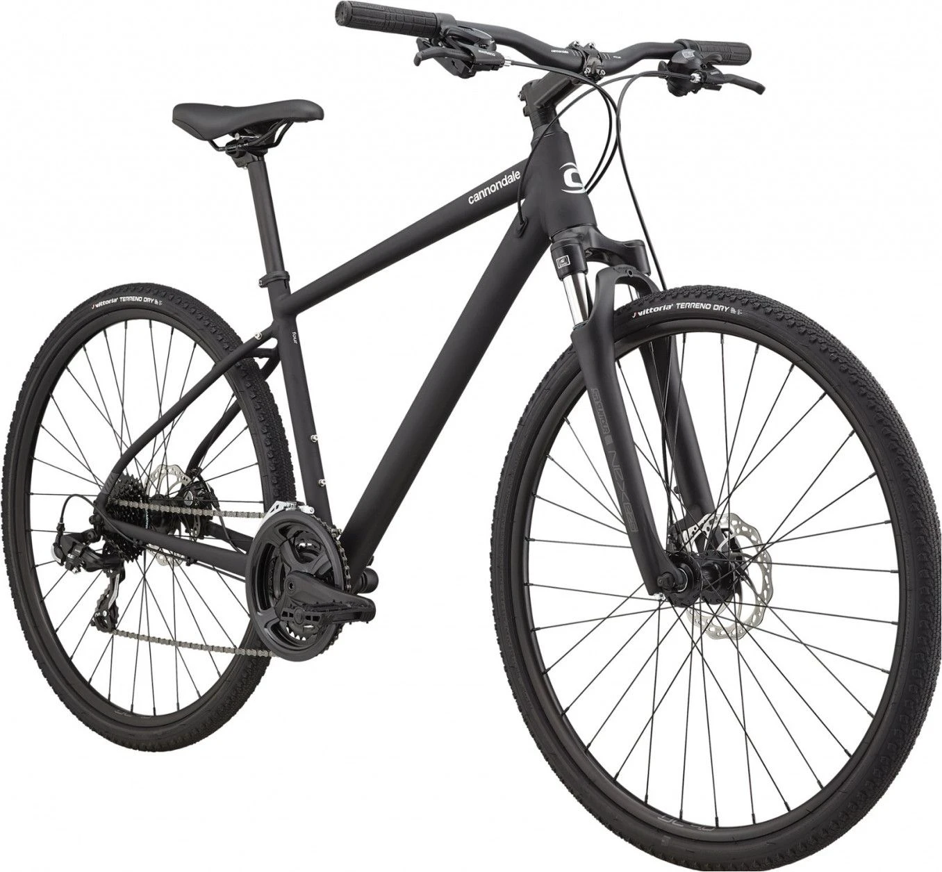 Go for it. Dirt road one day, highway the next, the Cannondale Quick CX 4 is a VTC designed to thrive wherever your adventure takes you. Comfort, control, visibility and speed are all taken care of with the Quick CX. The suspension fork absorbs shock, while the multi-surface tires and reflective graphics keep you in control of the roads and trails at all times. The upright, ATV-inspired riding position is natural, safe and comfortable in all riding situations. Years of expertise in building aluminum frames means the bike is visibly light, yet offers enjoyable performance, on or off the road.