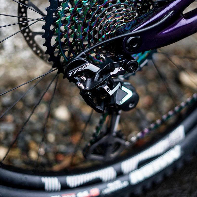 The TRP G-Spec TR12 12-speed rear derailleur guarantees smooth and precise long-term operation, this TR12 model has been designed for engaged practices (Trail, Enduro ..) The new Hall-Lock function developed by John Hall, prevents unwanted movements during assembly / disassembly of the rear wheel. To keep the chain in place in all situations, a ‘Ratchet Cluch’ is also used on the cage. All of these technical advancements keep chain slam to a minimum and every gear change can be made with precision.