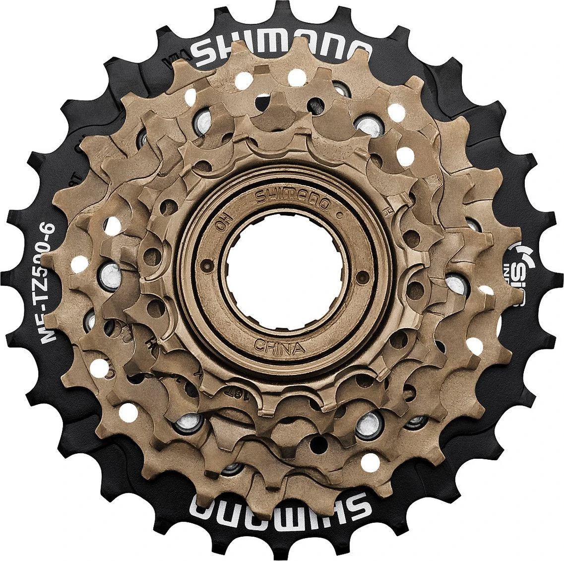 Freewheel MF-TZ500 screws onto the hub using a tool like Shimano FW30.Â